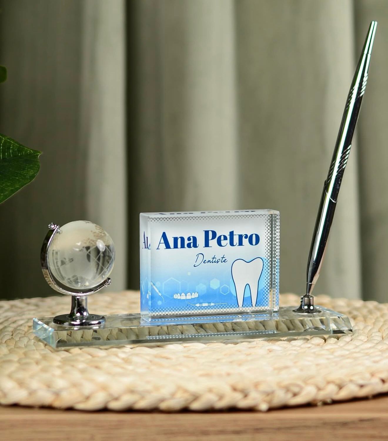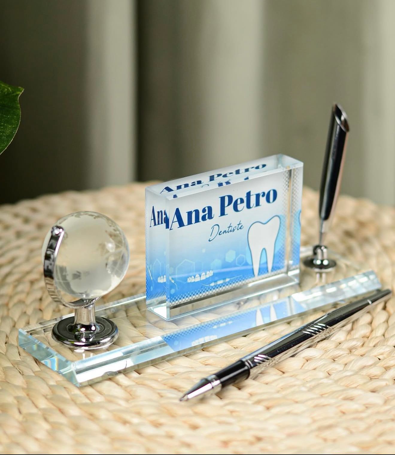 Përmasa e pllakës së personalizuar është 8×6 cm, ndërsa baza është 18×5 cm.